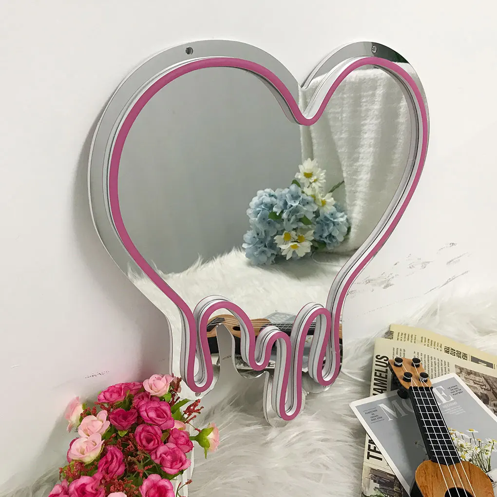 Espejo LED Neón de Lujo – Estilo Vanity en Forma de Corazón | Edición Decorativa Premium para Tocador o Dormitorio